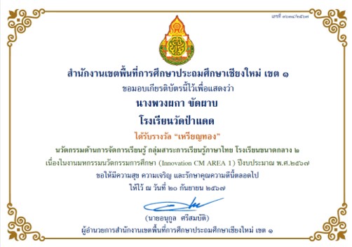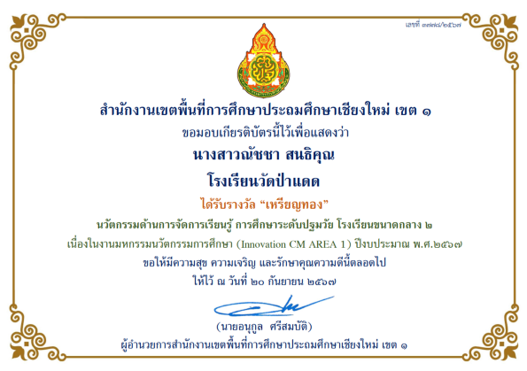 รางวัลเกียรติยศวันครู พ.ศ.2568 " เรียนดี มีความสุข : ครูไทยร่วมใจปฏิวัติการศึกษา สร้างเด็ดฉลาดคิด ฉลาดทำ" เนื่องในงานวันครู ครั้งที่ 69 ประจำปี 2568 จังหวัดเชียงใหม่ |